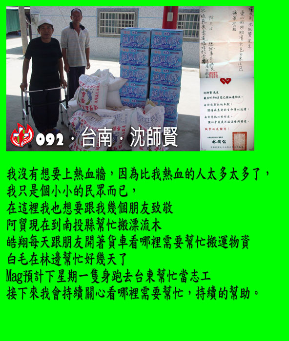 第二個,不管你為這次八八水災付出了什麼,努力了什麼,懇求你把照片和一句話寄給我們。