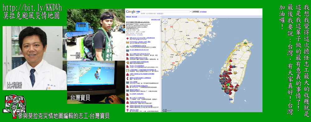 統整網路上各處災情資訊和回報的莫拉克颱風災情地圖就這麼誕生了。
