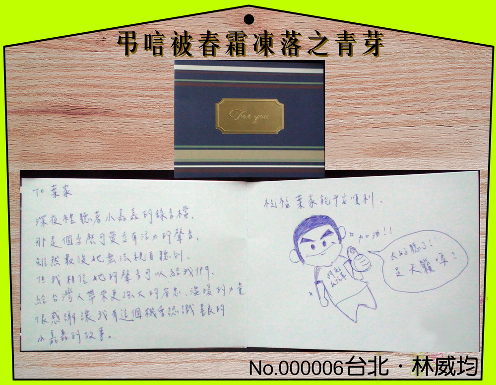 我們會請願意支持你們的,和你們感同身受的網友們,寫一張卡片給你們。
